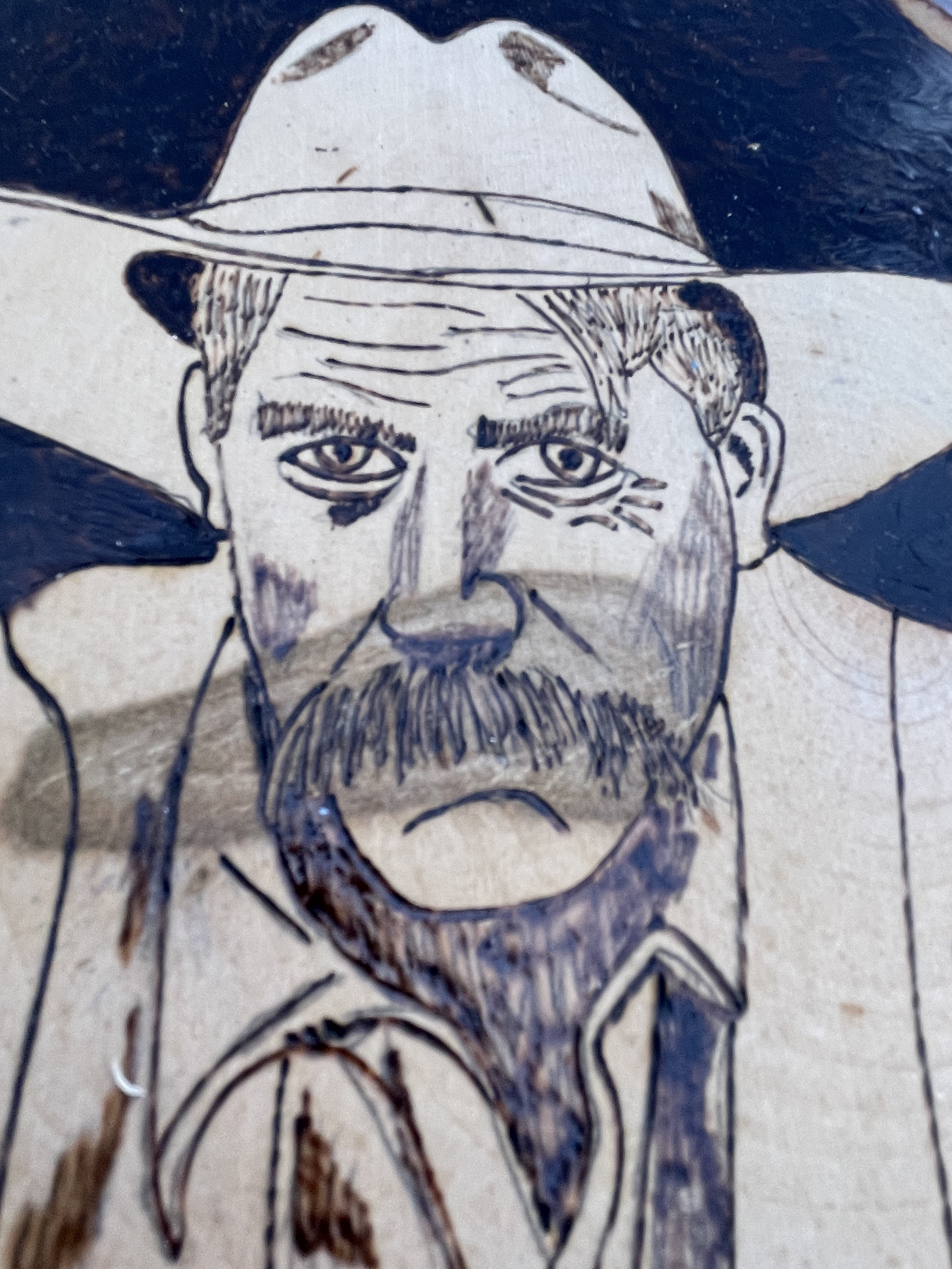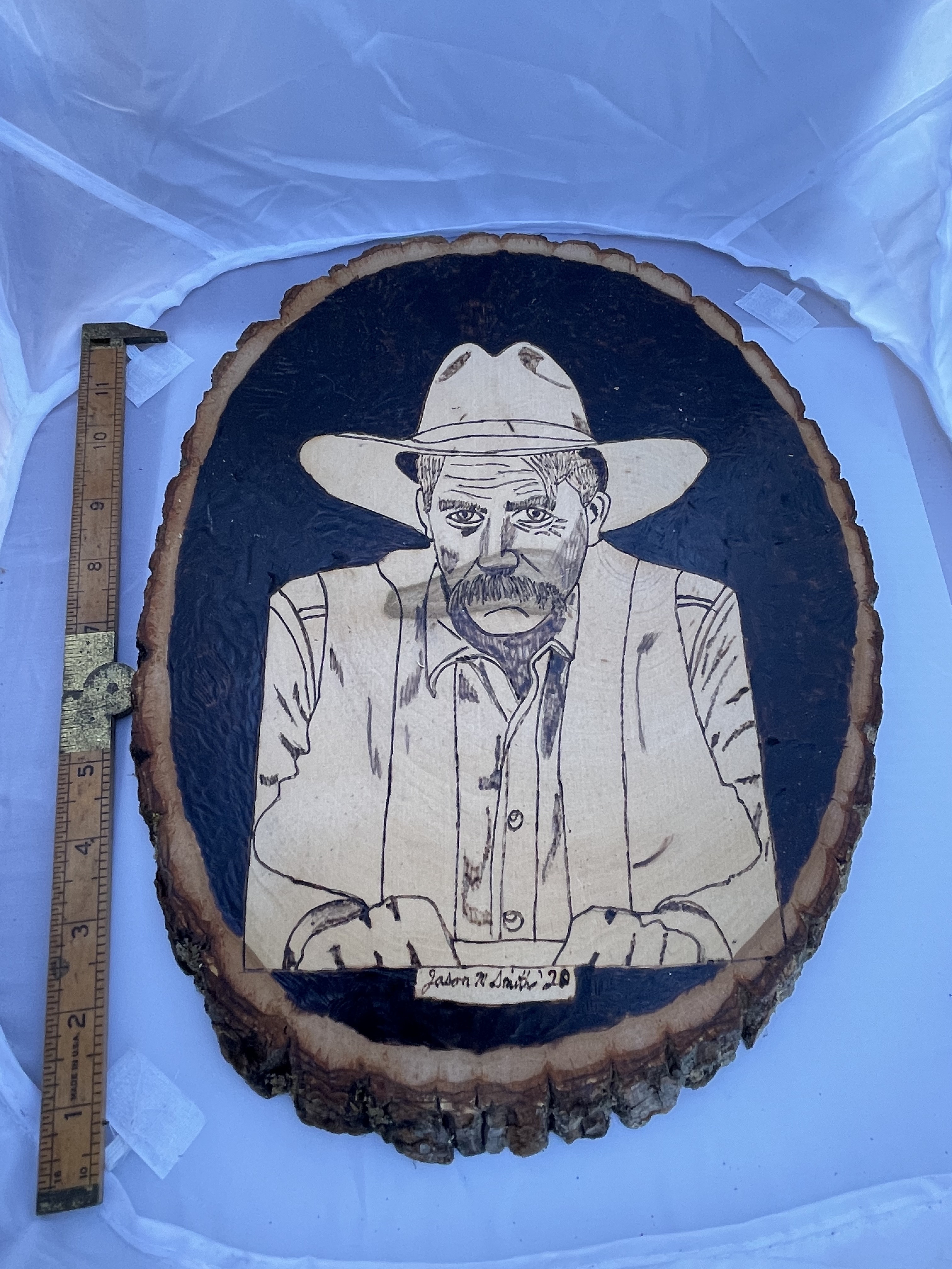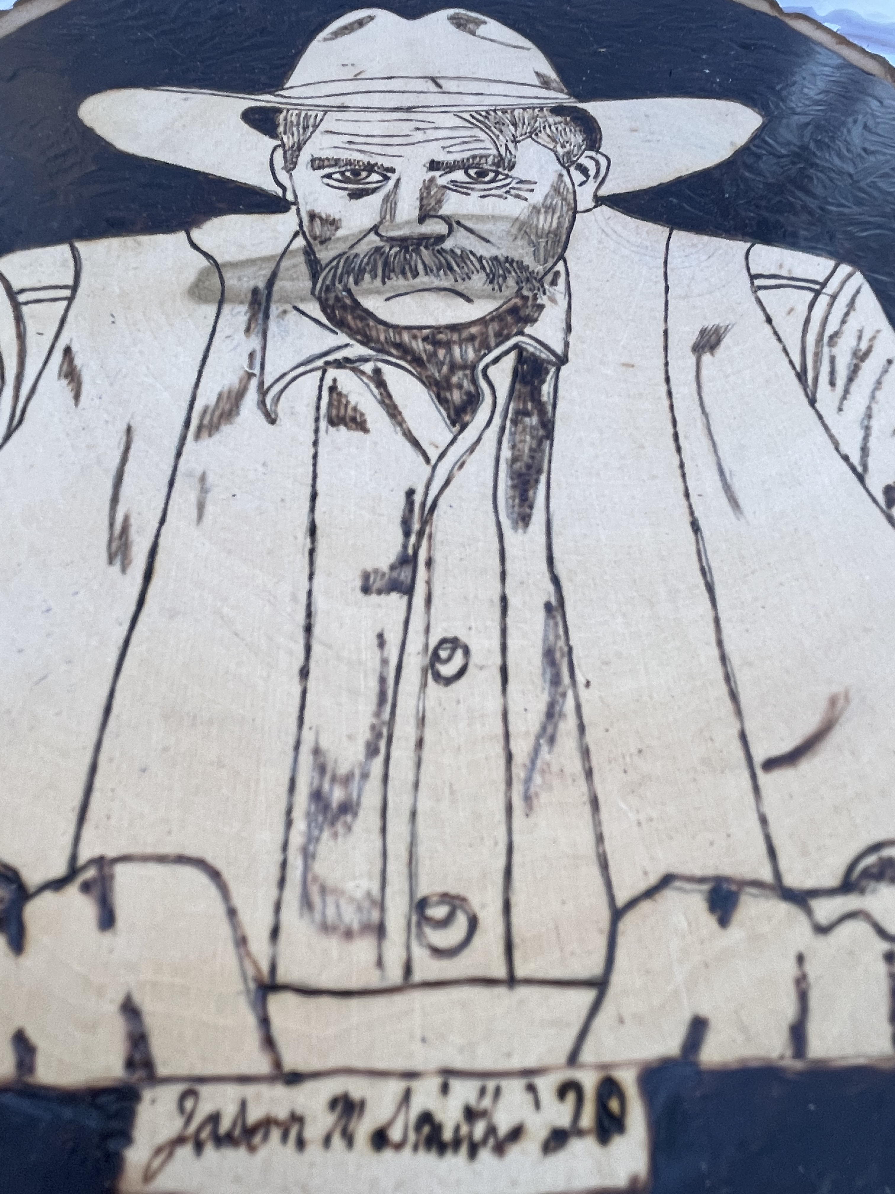 Pyrography Portrait of a Cowboy Signed Jason M. Smith '20