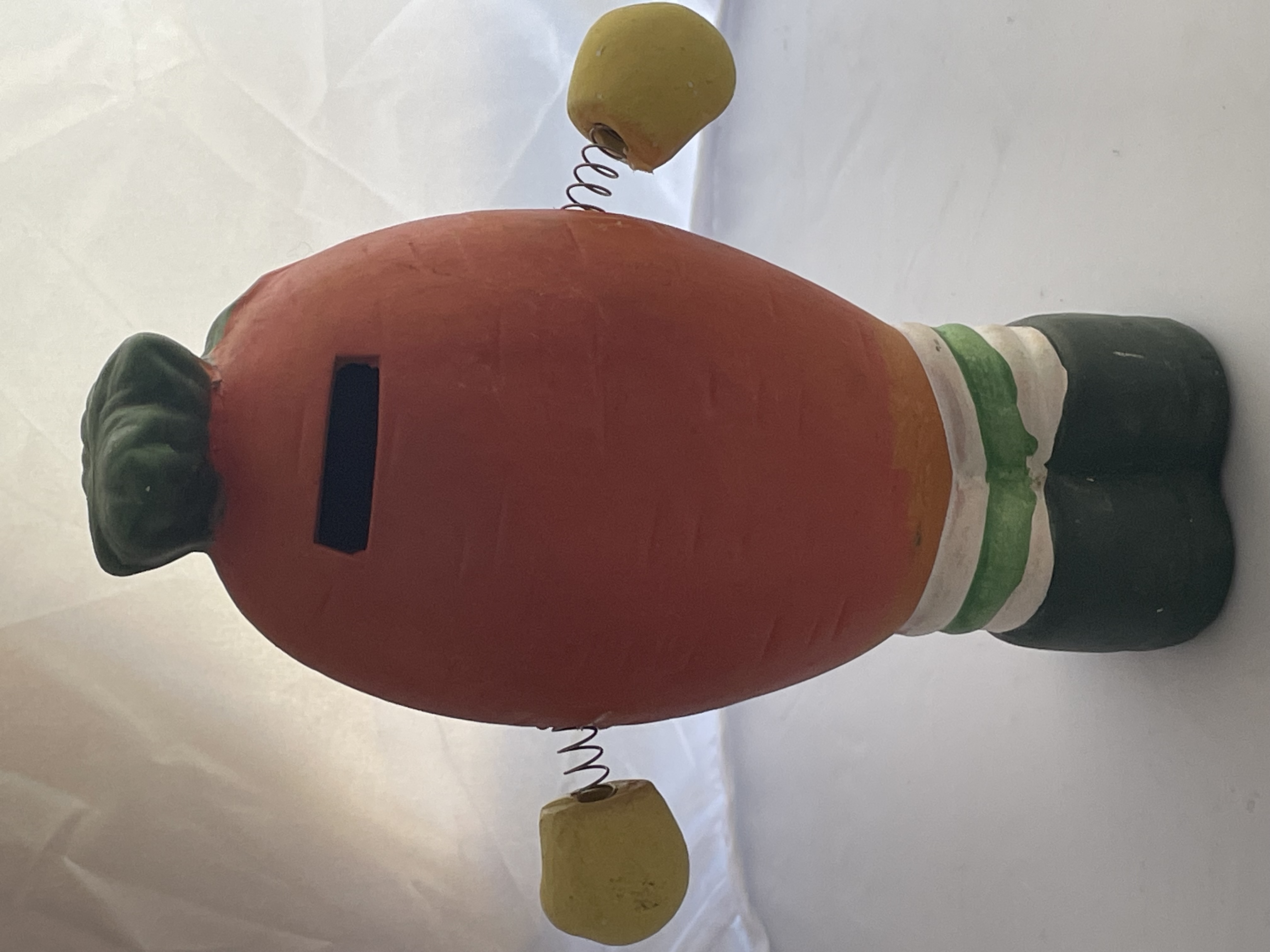 Kitschy Ceramic Anthropomorphic Carrot Cartoon Figure Coin Bank