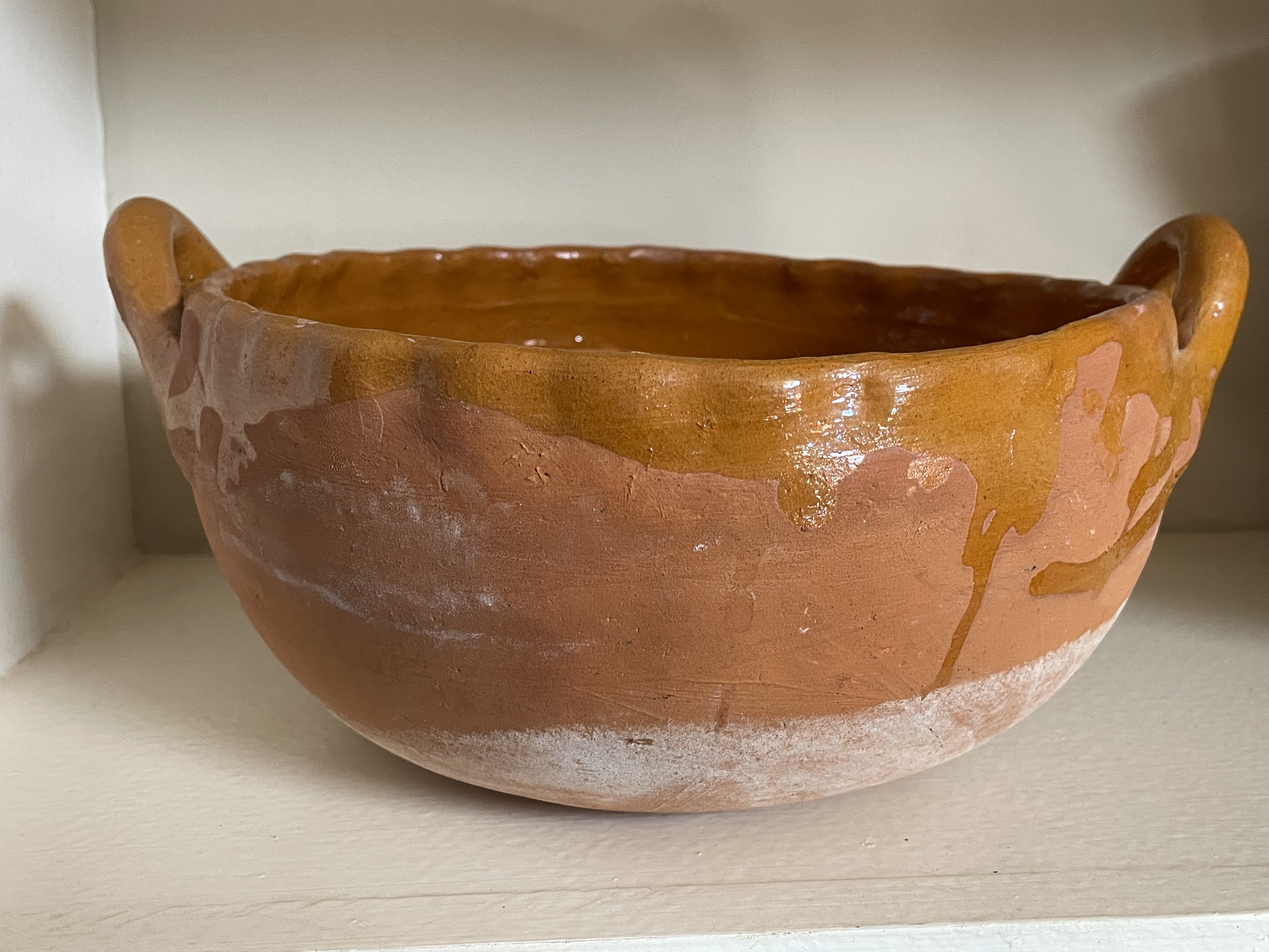 Mexican Folk Pottery Glazed Terracotta Cazuela Style Bowl